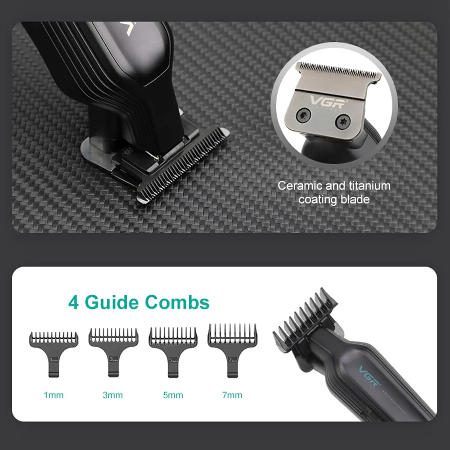 - Precision T-Blade for Zero-Gap Trimming — Equipped with a high-precision T-blade, VGR V-930 allows for close, clean cuts. It’s ideal for beard outlines, stubble, hairlines, sideburns, body hair, and detailed grooming — delivering sharp, professional-level results.